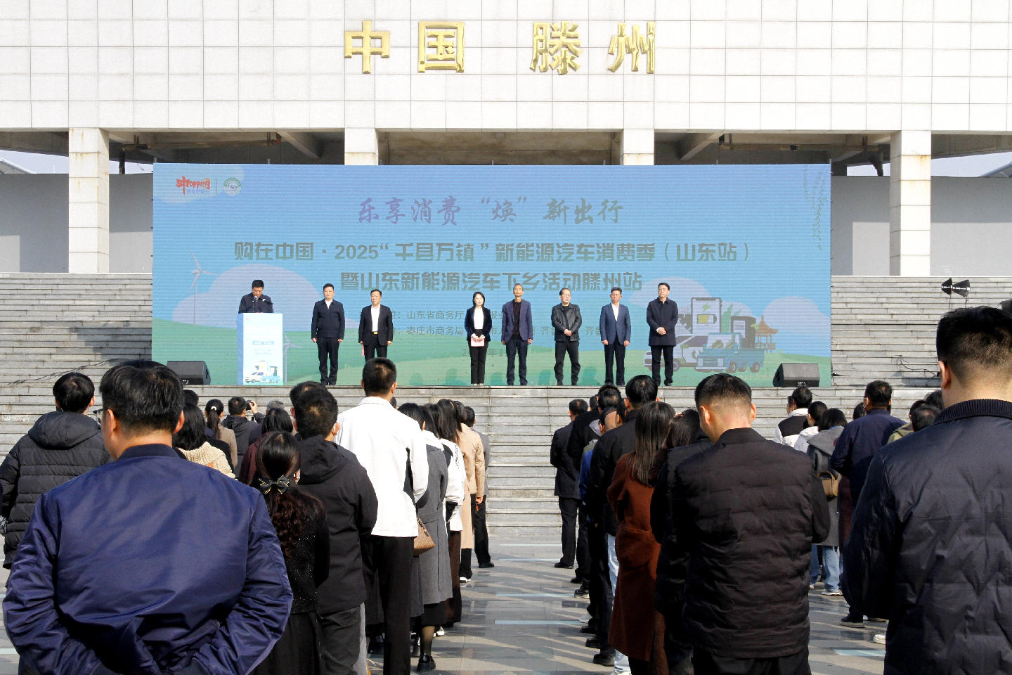 11月14日,購在中國?2025“千縣萬鎮(zhèn)”新能源汽車消費季(山東站)暨山東新能源汽車下鄉(xiāng)滕州站活動在滕州市奧體中心五環(huán)廣場正式啟動。大眾報業(yè)集團、齊魯晚報·齊魯壹點棗莊融媒中心主任白雪巖,棗莊市商務(wù)局黨組成員、副局長郭立波,滕州市政府黨組成員、副市長徐方坤,市融媒體中心主任周書海,市商務(wù)和投資促進局黨組書記、局長宗兆波,市市場監(jiān)督管理局黨組書記、局長 陳凡鋒,市體育事業(yè)發(fā)展中心黨組書記、主任丁濤,北辛街道黨工委副書記、辦事處主任孔維剛等出席活動。各鎮(zhèn)(街)分管負責(zé)人,商務(wù)投促局、北辛?街道機關(guān)干部以及汽車銷售企業(yè)代表、市融媒體中心記者等參加了啟動儀式。滕州市商務(wù)和投資促進局黨組書記、局長宗兆波主持啟動儀式。