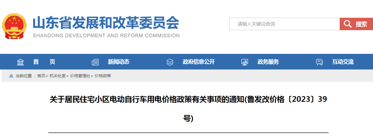 近日山東省發展和改革委員會發布通知明確居民住宅小區電動自行車用電價格政策有關事項